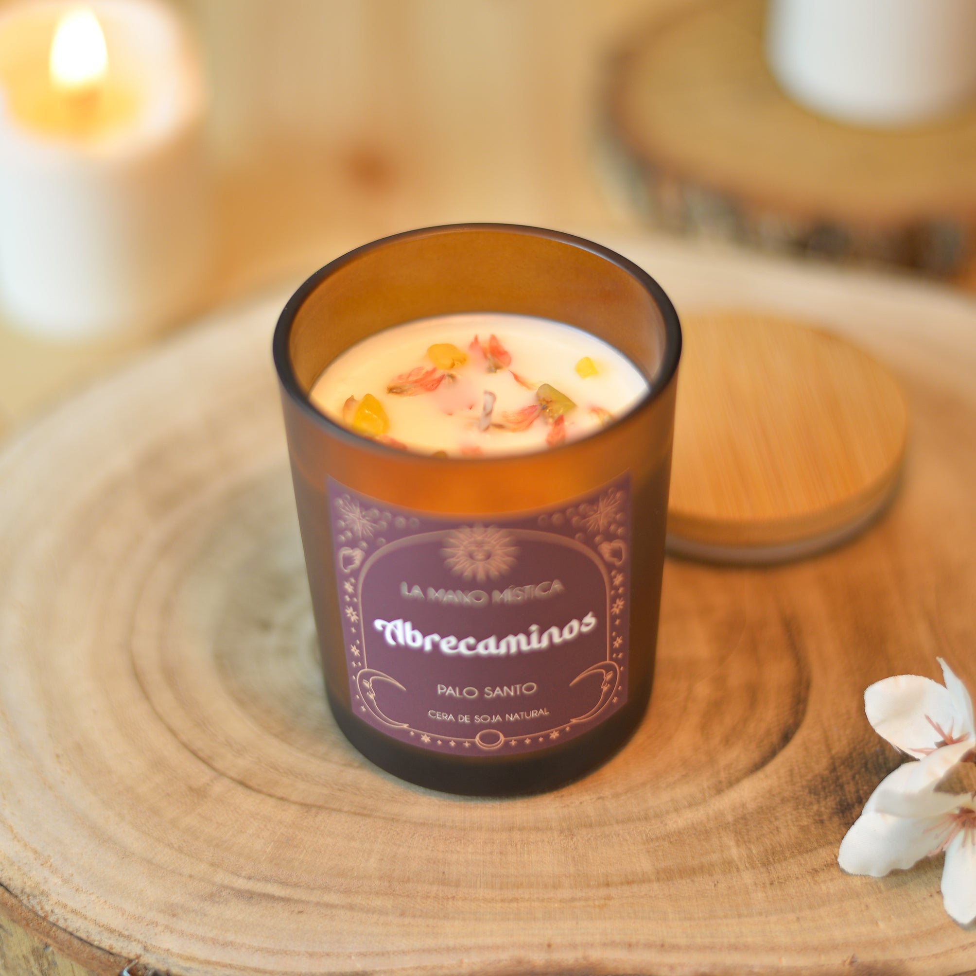 Las brujas la encendían antes de un nuevo comienzo. Su fragancia a palo santo limpia las sombras, atrae la suerte y abre los caminos del corazón. Hecha con cera natural, esta vela es un poderoso amuleto para purificar tu hogar y llenar tu vida de luz y propósito.