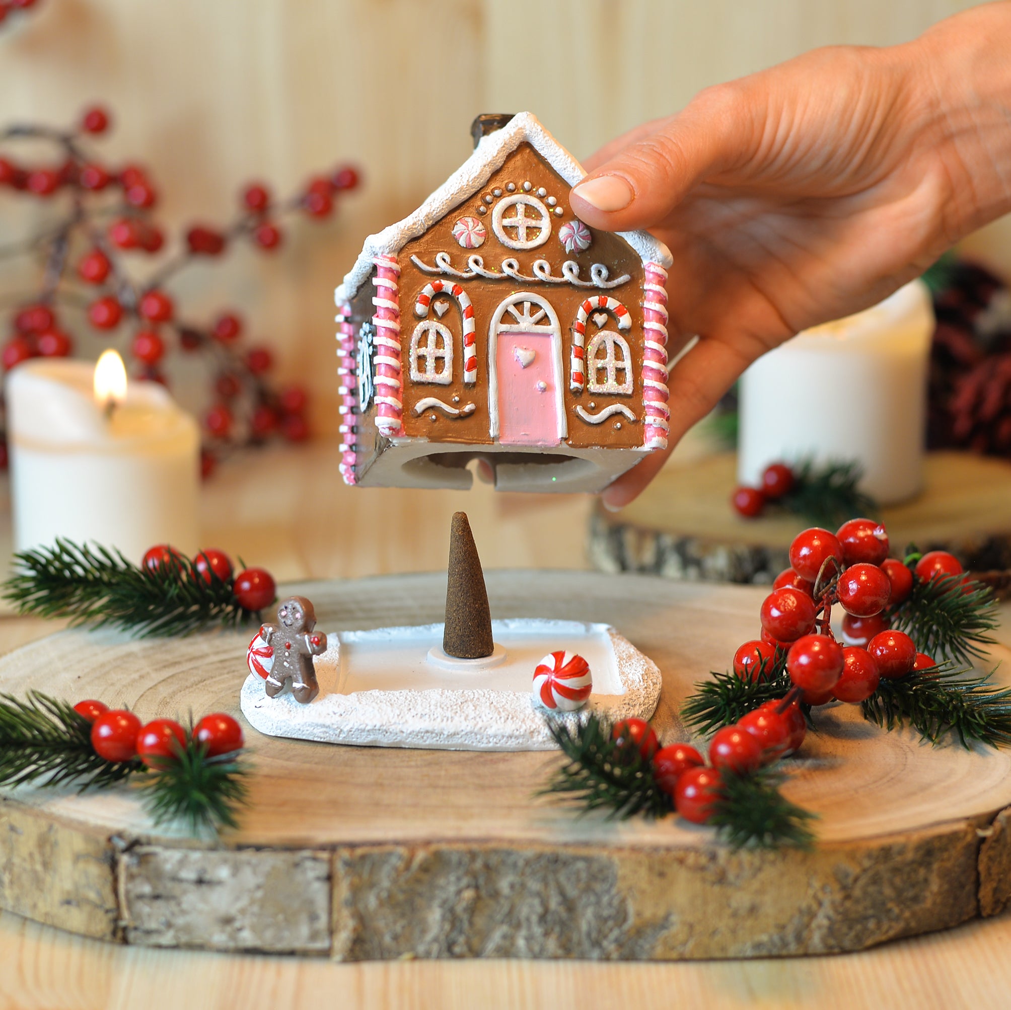 Quemador casita de jengibre para conos – Dulzura navideña con humo encantado