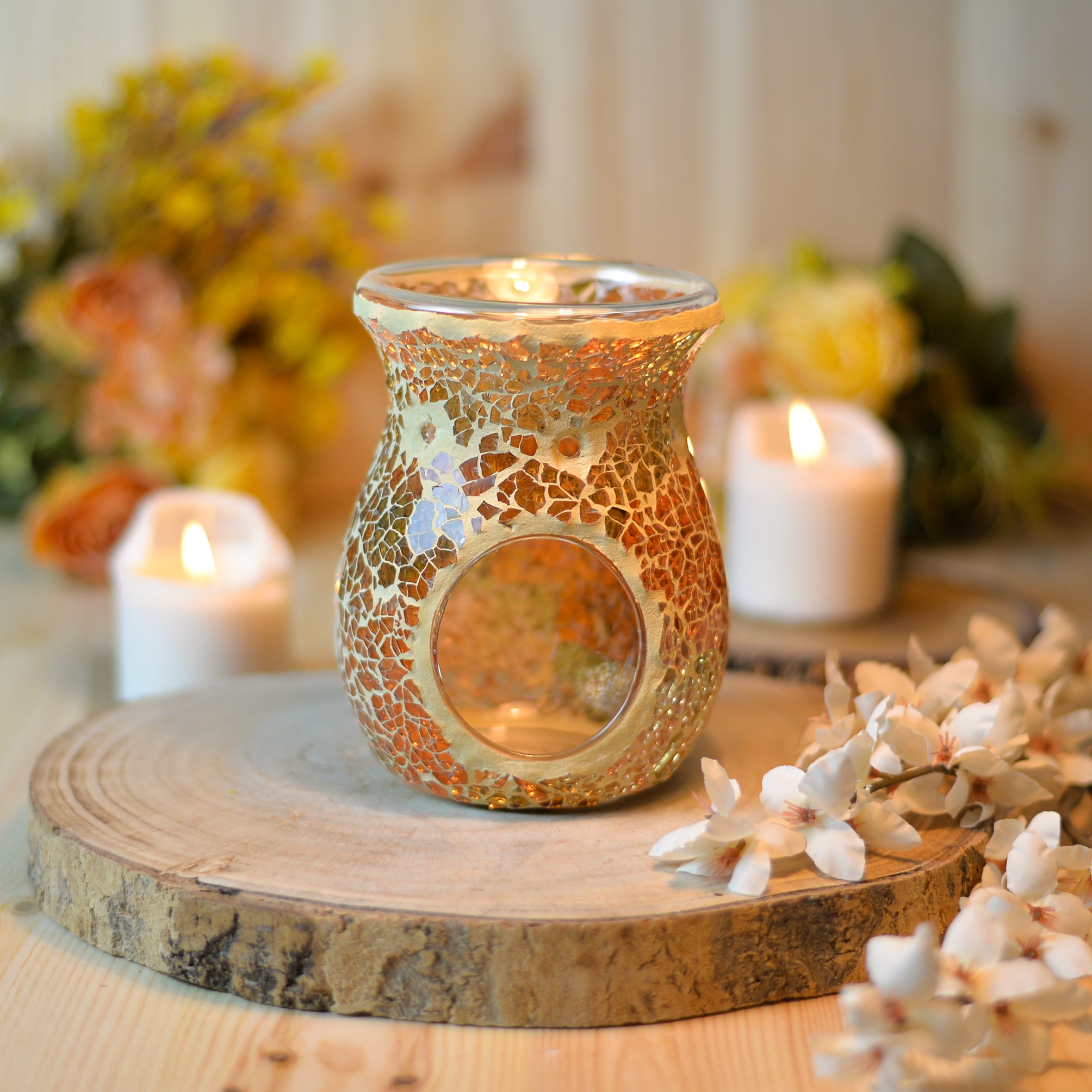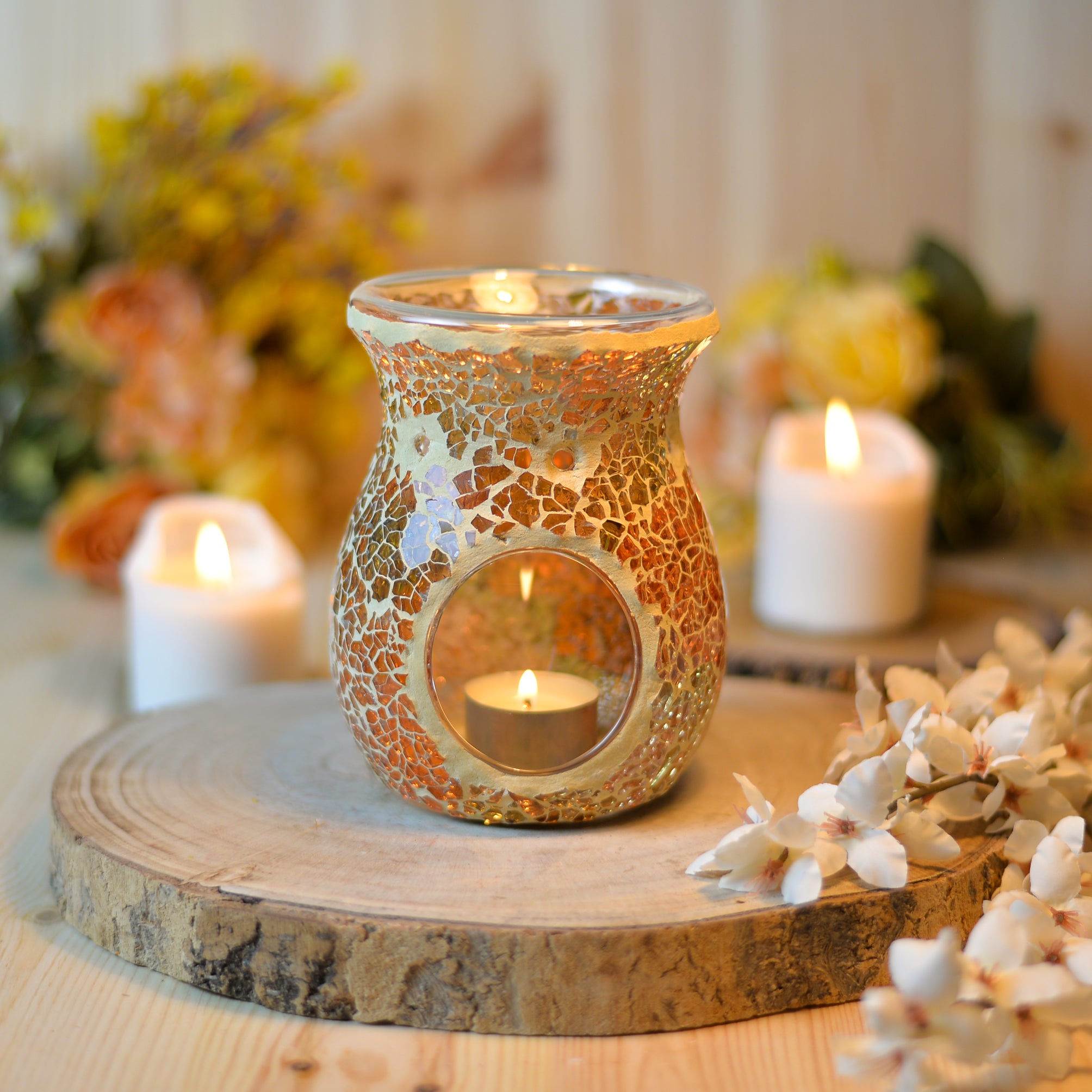 Ideal para quienes buscan una pieza decorativa con presencia y personalidad, su superficie refleja destellos mágicos al encender una vela de té en su interior. Añade tu wax melt artesanal o aceite aromático favorito y deja que el aroma se fusione con la luz para crear un ambiente sereno, elegante y profundamente sensorial.